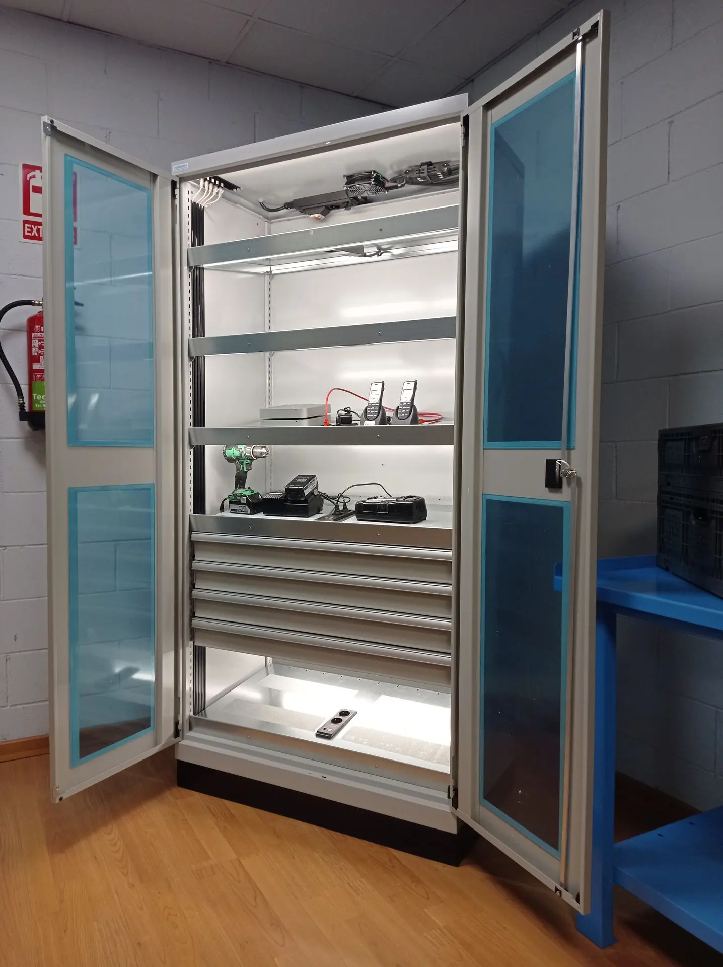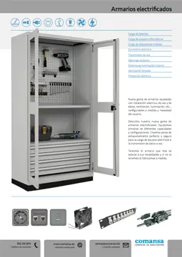 Nueva gama de armarios equipados con instalación eléctrica, de voz y de datos, ventilación, iluminación, etc... configurables a medida y necesidad del usuario. Descubra nuestra nueva gama de armarios electrificados. Equipamos armarios de diferentes capacidades y configuraciones. Creamos zonas de almacenamiento perfecto y seguro para la carga de equipos eléctricos o la transmisión de datos o voz.