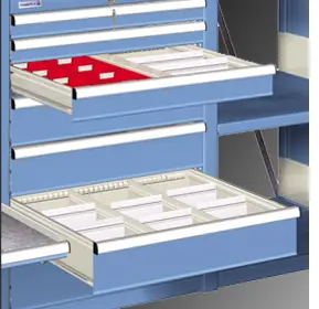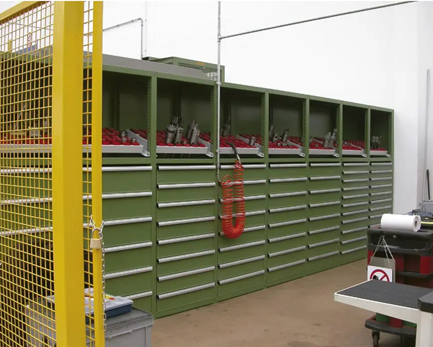 Además de los cajones convencionales también están disponibles cajones verticales para almacenar elementos o herramientas de gran altura como tornillos sin fin o herramientas de corte.