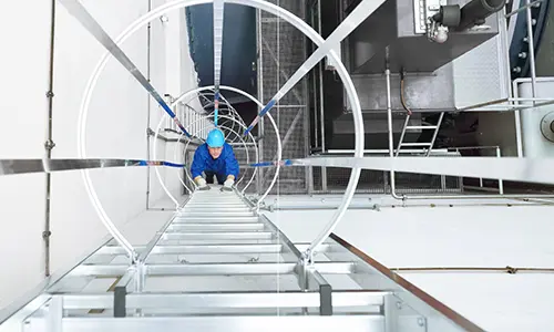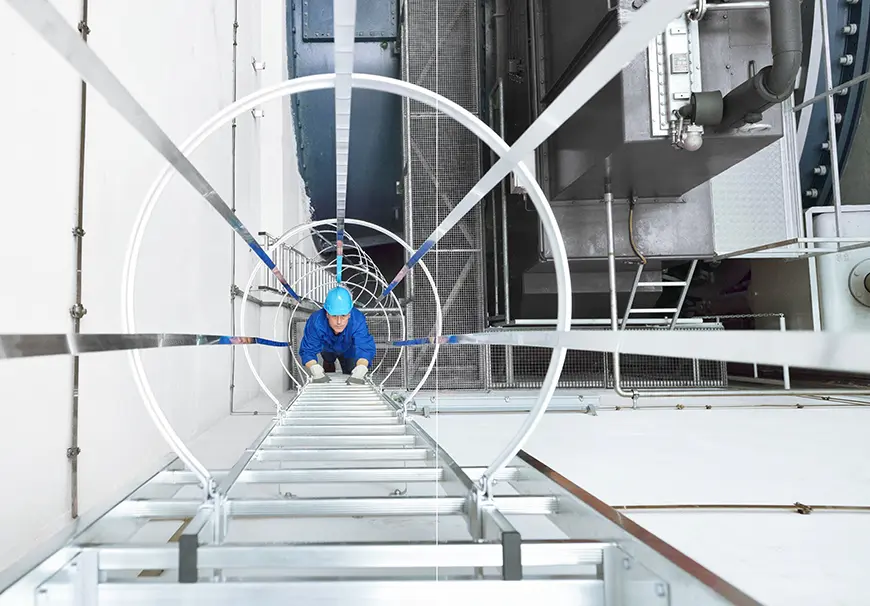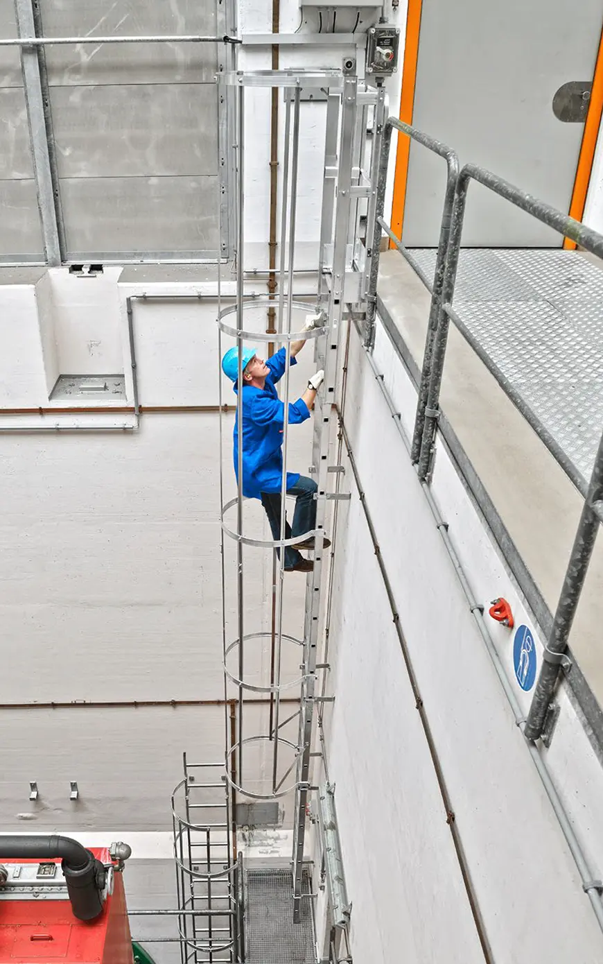 Nuestro sistema de escaleras verticales fijas cumplen todas las normas relevantes y ofrecen un control de calidad verificado y certificado
